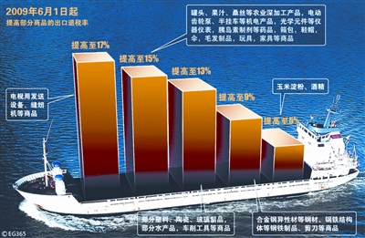 这是今年内第3次上调出口退税率,也是自去年8月金融危机影响进一步凸显以来第7次上调,预计此次上调将增加退税资金约252亿元。