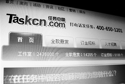 创立于2005年的威客网站任务中国CEO钟聪华在接受记者采访时说,目前任务中国网站的注册工作室接近250万个,悬赏任务总金额超过2000万元。“这只是线上显示的数据,不包括线下进行的项目,而这部分项目占总数的一半左右。”