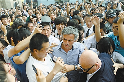 六月七日,北京,意甲国际米兰队主教练穆里尼奥现身国米专卖店,引不少球迷围堵。