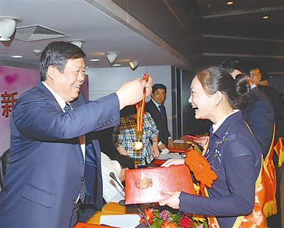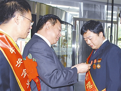 中国移动通信集团公司党组书记、副总裁张春江为劳模代表颁奖