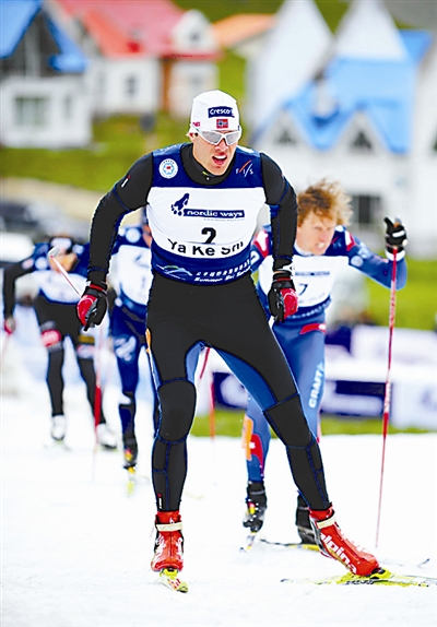 6月11日,第三届国际雪联越野滑雪中国夏季巡回赛第二站比赛在内蒙古牙克石市进行,来自国内外的50余名越野滑雪顶尖选手参加了此次比赛。图为挪威选手艾弗森获得男子短距离1200米比赛冠军。新华社记者 任军川 摄
