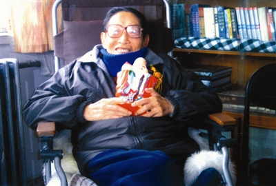 病榻上的丁聪先生尽管言语吃力,但仍和“泥人张”的老寿星一样,笑得那么开心! 徐 进 摄于2007年10月