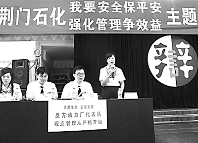 6月5日下午,中石化荆门石化动力厂和中石化荆门分公司化工厂青年职工,分别以“安全监督重于安全意识”和“安全意识重于安全监督”为论点展开一场思考交锋激烈的辩论。辩论中引用的诸多事实让近千名青工顿悟:安全意识与监督同等重要!安全意识强,安全监督才有效。辩论还引导班组职工认真总结反思自身不安全行为和不良习惯,让安全警钟随时响在灵魂深处。 彭娇妍 李玲 摄