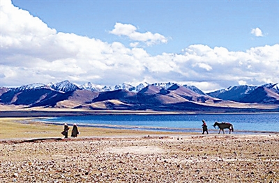 夏天的纳木错最为欢腾喧闹,野牦牛、岩羊、野兔等野生动物在广阔的草滩上吃草;无数候鸟从南方飞来,在岛上和湖滨产卵、孵化、哺育后代;湖中的鱼群时而跃出水面,阳光下银鳞闪烁;牧人扬鞭跃马,牛羊涌动如天上飘落的云彩,高亢、悠扬的歌声在山谷间回响。幽静安谧的纳木错生机勃勃,意趣盎然。