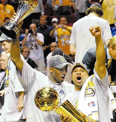 99比86,洛杉矶湖人队在NBA第五场总决赛中,击败魔术队,获得了球队历史上的第15次总冠军。这个冠军对球队的核心科比还有着特别的意义,这是他首次作为球队领袖独立带队获得的冠军。而对于一个新的“湖人王朝”来说,今天的总冠军或许还只是开始。