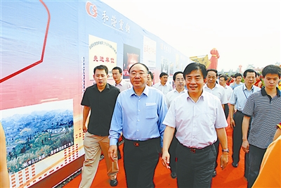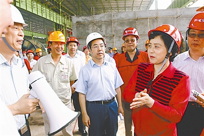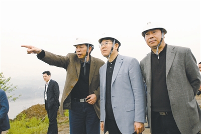 重庆市”建好一号工程”领导小组组长童小平(右二)在重钢长寿新区视察工作