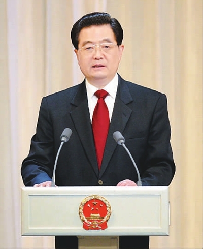 6月17日,国家主席胡锦涛在中俄建交60周年庆祝大会上发表讲话。新华社记者 兰红光 摄