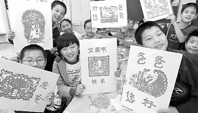 当日,为迎接6月21日父亲节的到来,辽宁省锦州市太和区平和小学的留守儿童每人创作了一幅剪纸作品献给在远方打工的父亲,让爸爸过一个暖意融融的父亲节。新华社发(李铁成 摄)