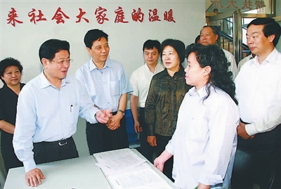 6月17日,中共中央政治局委员、全国人大常委会副委员长、中华全国总工会主席王兆国到唐山市总困难职工帮扶中心考察,与到中心求助的困难职工亲切交谈。 郭昭 摄