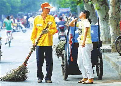 6月21日是父亲节,清晨7时,湖北襄樊,雨后的东风路,天气微凉,周诗雨拉着爸爸的垃圾回收车,紧紧跟在他身旁。尽管早就知道“父亲节”,但小雨和爸爸从未把它当做节日来庆祝。今年13岁的小雨,性格腼腆,不爱说话,爸爸清理垃圾时,她总是默契地停下回收车,帮爸爸把垃圾倒进车里。贾代腾飞 摄