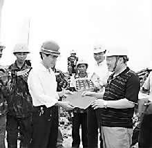 在中国铁建十八局集团厦深指挥部开展的百日大战活动中,二公司长沙湾大桥项目部以完成9700万元的产值名列局指第一。6月8日,二公司董事长张文卷到一线慰问送清凉,鼓励职工再创佳绩。 张建友 摄