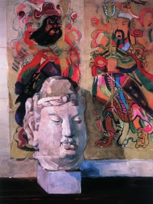 袁运甫教授写生多采用水粉材质,这与他多年指导学生,从事教学有关。他的水粉画作品表现的自然生动,构成讲究;色彩艳而不燥、灰而不沉;写实造型,写意神韵。其实综观袁运甫的绘画,他尊崇传统又不为传统所拘,西式手法中不拒东方意向。写实自然光源,写意色彩冷暖。非常注重构图的构成比例,色彩上运用水墨画、彩墨画、重彩画等多种绘画语言的结合,形成袁氏绘画的独特表述语言。 法明