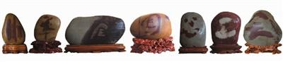 这是一组寻采自黄河古道的天然奇石,在2007年“走进奥运”全国奇石选拔赛上获得金奖,并为《收藏》杂志刊载。收藏者是热爱艺术奇石的宁夏中卫市总工会主席马建兴。
