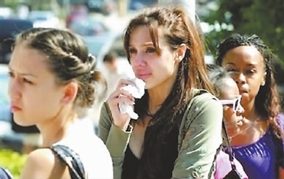 6月26日,一代歌王迈克尔·杰克逊因心脏病发作在美国洛杉矶加州大学医疗中心逝世,终年50岁。迈克尔·杰克逊是西方流行音乐的重要偶像。他在作词、作曲、场景制作、编曲、演唱、舞蹈、乐器演奏都有着非常卓越的成就,其音乐曲风完美地融合了黑人节奏蓝调与白人摇滚的独特乐风,在全球范围内拥有亿万歌迷。图为他的“粉丝”听到噩耗后在这家医院外啜泣。阿健 供图