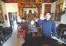 胡家大院的主人向来宾介绍家中现存唐宋时期以来的众多典雅精致的雕绘艺术 (图②) 。