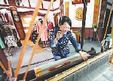 丝绸在古城已有千年的历史,桑蚕织丝绸就是这个家庭的主要经济来源(图③)。