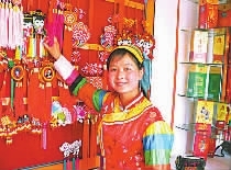 美丽的土族姑娘和工艺品。