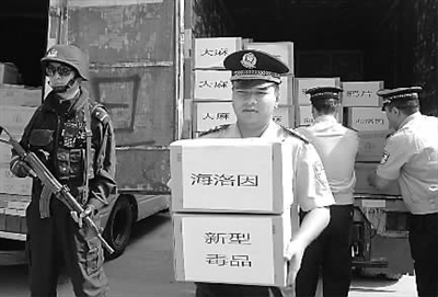6月24日,乌鲁木齐干警在搬运准备销毁的毒品。
