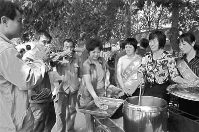连日来,河北省出现了持续的高温天气,冀中能源金牛股份公司东庞矿工会组织职工家属,深入矿区,为下井职工和外出作业职工送去西瓜、绿豆汤等解暑降温食品。按照该矿最近出台的规定,气温达到或者超过36摄氏度的时候,必须及时启动防暑降温预案,确保井下职工和高温作业职工安全度夏。 杨春香 巩明山 摄