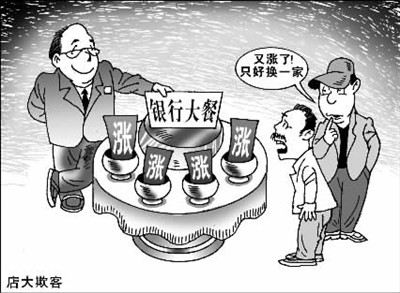 新出台的政策优惠了大客户,却抬高了小客户的门槛,由于工行垄断了许多企业和退休人员的工资卡,使得他们虽受歧视却还得被迫进工行的门。