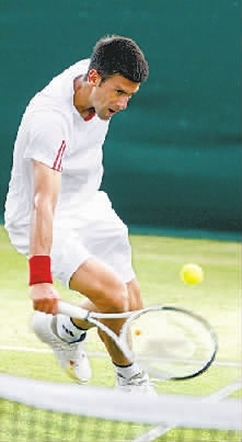 6月29日,塞尔维亚选手焦科维奇在比赛中回球。当日,在2009年温布尔登网球公开赛男单第四轮比赛中,焦科维奇以3比0战胜以色列选手塞拉,晋级八强。