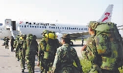 西部航空乘务员与“铁军”飞往成都双流国际机场