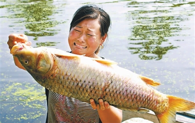 7月2日,一位手捧死去的大鲤鱼的养殖户无奈中伤心地哭了。