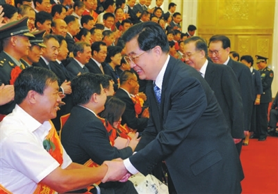 上午9时30分,当胡锦涛等中央领导同志来到人民大会堂北大厅同出席会议的代表们见面时,全场响起热烈的掌声。胡锦涛等高兴地与代表们握手,并同大家合影留念。