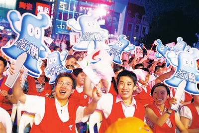 当日,“我们在你身边”上海世博志愿者大型公益晚会在南京路世纪广场举行,来自上海社会各界的2000多位世博会志愿者共同庆祝世博会倒计时300天。