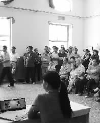 图为6月30日巡回法庭在首钢矿业公司的水厂矿居委会活动中心公开开庭审理一起因工作纠纷产生的人身伤害案件。