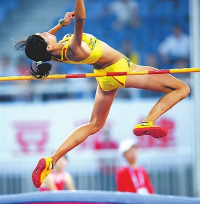 7月5日,福建特步队选手郑幸娟以1米88的成绩获得女子跳高冠军。当日,2009年全国田径大奖赛济南站暨全运会田径测试赛在山东济南奥体中心落幕。新华社记者 范长国 摄
