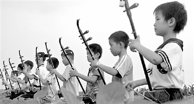 7月6日,一曲《在希望的田野上》,回响在河南新蔡栎城乡六里棚村秋田。当日,六里棚中村小学留守儿童们在秋田里拉练二胡曲,碧绿丰实的田野成为这些孩子们快乐消夏的“乡村音乐会所”。