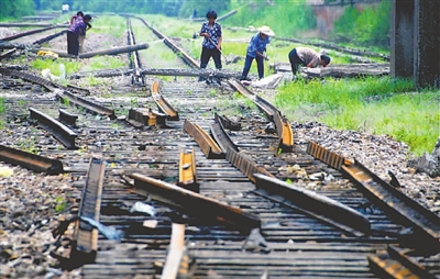 上海:废弃铁轨遭数百拾荒人疯狂盗窃