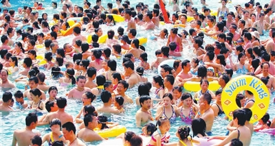 7月12日,“重庆加勒比海水世界”冲浪泳池里游客在戏水。今年6月才开园的“重庆加勒比海水世界”当日迎来了第一个游客高峰,共有超过1万人进入这个水上主题公园尽情享受清凉。随着气温逐渐升高,重庆各大水上娱乐场所生意开始火爆起来。新华社记者 刘潺 摄