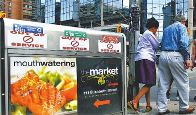 7月13日,加拿大多伦多市的一个垃圾箱被贴上“暂停使用”的标签。近3万多名多伦多市政工人6月22日起开始罢工。受其影响,多伦多市垃圾无人清理,大街小巷垃圾成堆,卫生状况十分糟糕。 新华社发 邹峥 摄