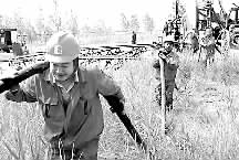 7月8日,一场突来的暴雨把河南中原油田桥21-9井场泡在水中。正在该井施工的采油六厂作业五队职工迅速开展生产自救:给井场抽水、运土、填坑、圈井场等。“没有条件创造条件也要上!”共产党员王嵩杰用铁人名言作现场鼓动,职工王晓飞、周广利等踩着泥泞路、靠人拉肩扛,把井上需要的物资和工具及时运送,保证了该井更换分割器施工的正常运行。马军 赵奕松 摄