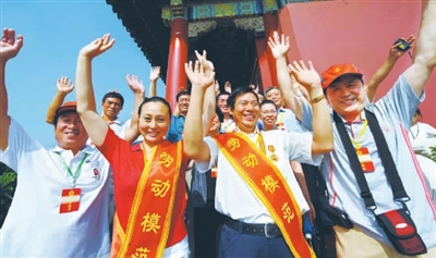 今天上午,庄严的天安门城楼迎来了一批特殊的观光者——来自全国各地的千名全国劳模和全国五一劳动奖章获得者。他们来自各个行业,最大的78岁,最年轻的23岁,此次相聚北京,是参加中华全国总工会组织的2009年全国劳模集中休养活动。