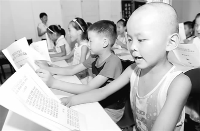 7月16日,合肥市钢红社区的农民工子弟在诵读《三字经》和《弟子规》。