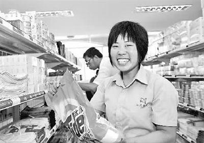 7月16日,一位困难职工凭“爱心卡”在江苏省泰州市高港区的“工会爱心超市”购物。当天,该区工会困难职工帮扶中心成立暨工会爱心超市开业。该中心对特困职工进行职业培训、就业扶助、困难救助、法律援助等“一站式服务”,方便了前来寻求帮助的困难职工和求职的下岗失业人员。