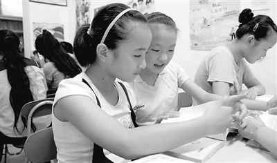 7月23日,农民工子弟在图书分馆里阅读自己喜欢的书籍。