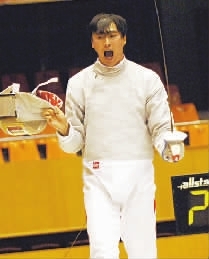 7月23日,天津队选手王敬之在合肥举行的第十一届全国运动会击剑预赛(第4站)暨全国击剑锦标赛男子佩剑决赛中,以15比11战胜辽宁队选手崔坤获得冠军。新华社记者 李健 摄
