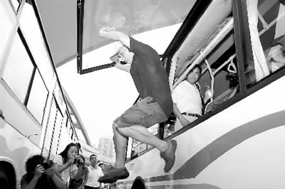 上海公交车现场演示应急窗征求市民意见