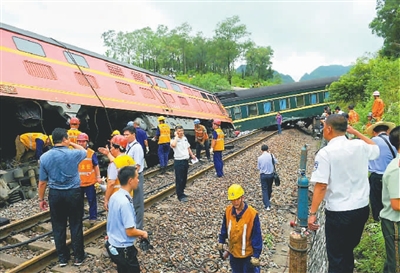 7月29日4时22分,由襄樊开往湛江的1473次旅客列车运行至焦柳线广西境内古砦至寨隆间,因连日持续强降雨造成山体崩塌掩埋线路,列车机车及机后1-4位车辆脱轨,造成4名旅客死亡,50余名旅客受伤,焦柳线中断行车。事故发生后,铁路部门立即启动应急预案,全力救治受伤旅客,迅速组织救援,做好事故列车旅客的安置工作。经过18小时左右的紧急抢险疏通,目前焦柳线已恢复通车。