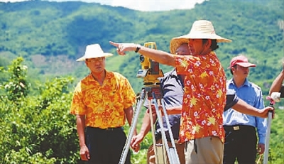 南田农场场长彭隆荣在指导农场的下一步规划