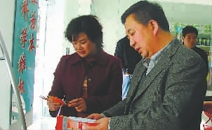 襄樊市委常委、市总工会主席谢豪斌(右)在襄阳区检查指导工作