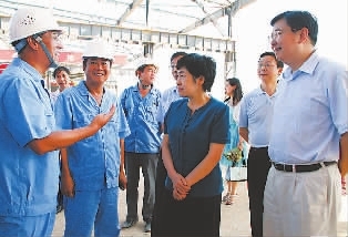 宜昌市委常委、市总工会主席廖达凤(右二)慰问走访重点工程