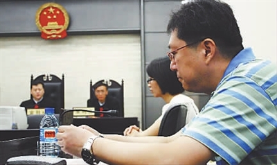 图为肖先生在法庭上。付中 摄