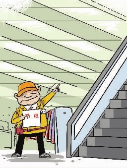 商城卖场有几十部自动扶梯,其上方的照明灯具检修工作一直是个难题,普通人字梯根本无处支立,如采取搭脚手架作业的方法需要大量的钢管脚手板,既费工又费时,妨碍了顾客的通行,影响正常经营。他多次到现场实地测量、勘察,反复设计、制作,设计出一个“三角形高空作业平台”。该设备使用时把此平台放在滚梯的梯阶上,上面放置垂直升降车,利用滚梯的相对横向运动和升降车的上下运动,可以到达滚梯上方的任何地方,能够非常安全、快捷方便地检修和更换滚梯上方的所有灯具,非常实用有效。这一方案对其它大型商厦解决类似问题,有一定的示范和借鉴作用。