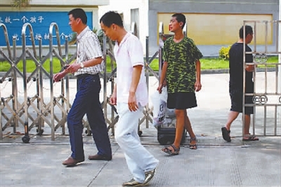 8月10日,广州浩今学校训练营,家长到学校接走孩子(详见本报昨日一版《戒网营:SOS!》图片报道)。当天,广州南沙区政府认定浩今职中举办训练营违法,在此之前已被查处两次。南沙区委宣传部对外宣称事件仍在调查处理中。贺顿 摄