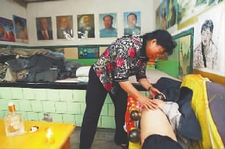 多年的劳累,让他们两口子身体落了不少病,疼痛时,殷玉珍用拔火罐的方式缓解丈夫的疼痛。